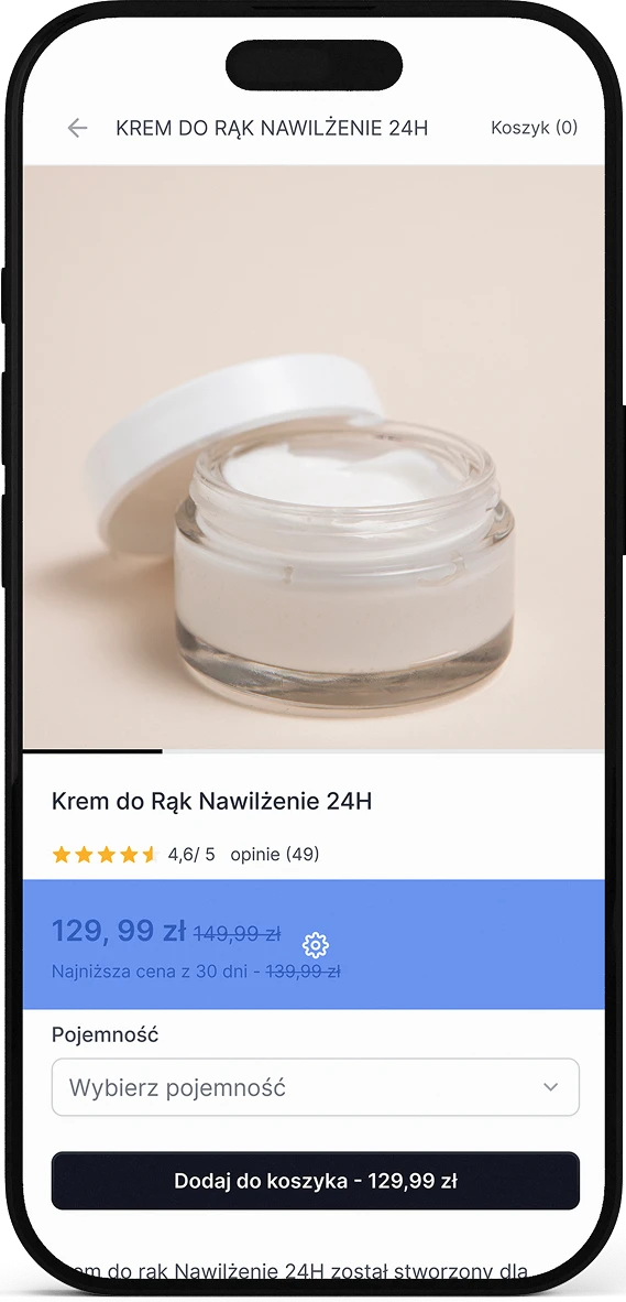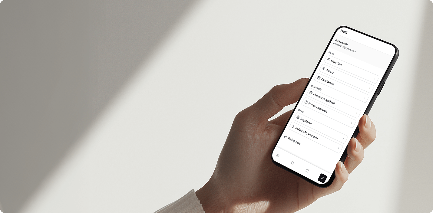 Zmieniaj kolory, typografię, marginesy, zaokrąglenia i układ sekcji, aby dopasować aplikację do stylistyki Twojego sklepu.